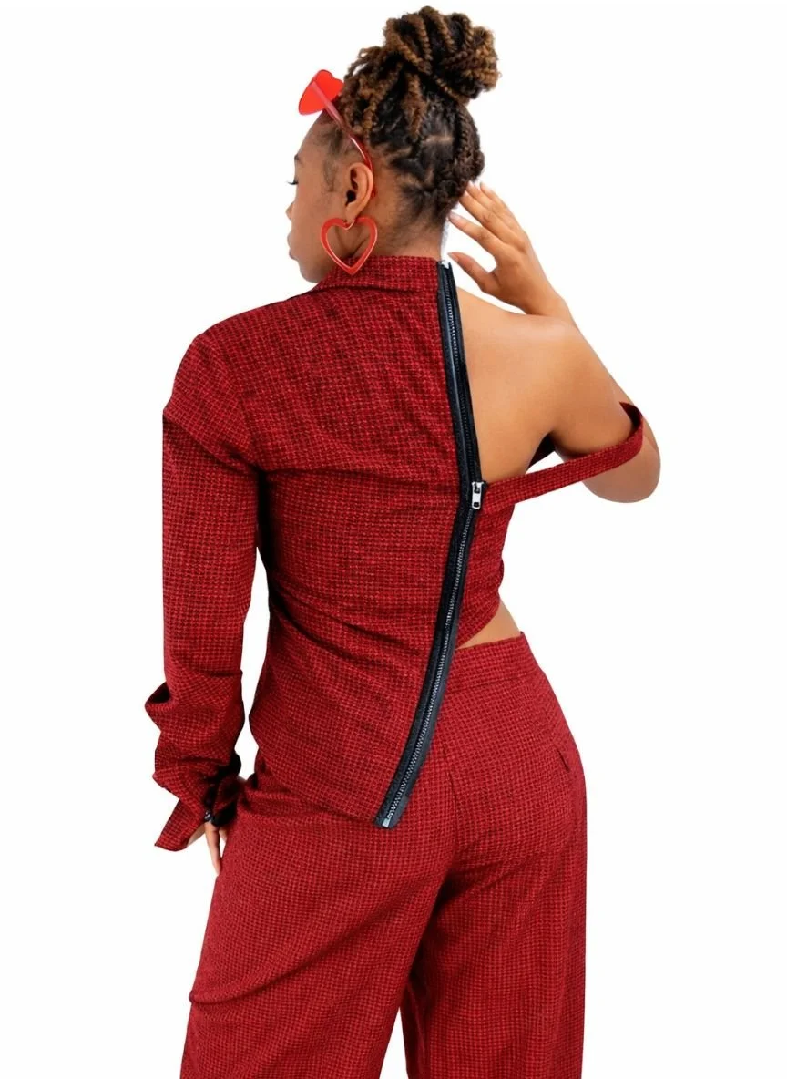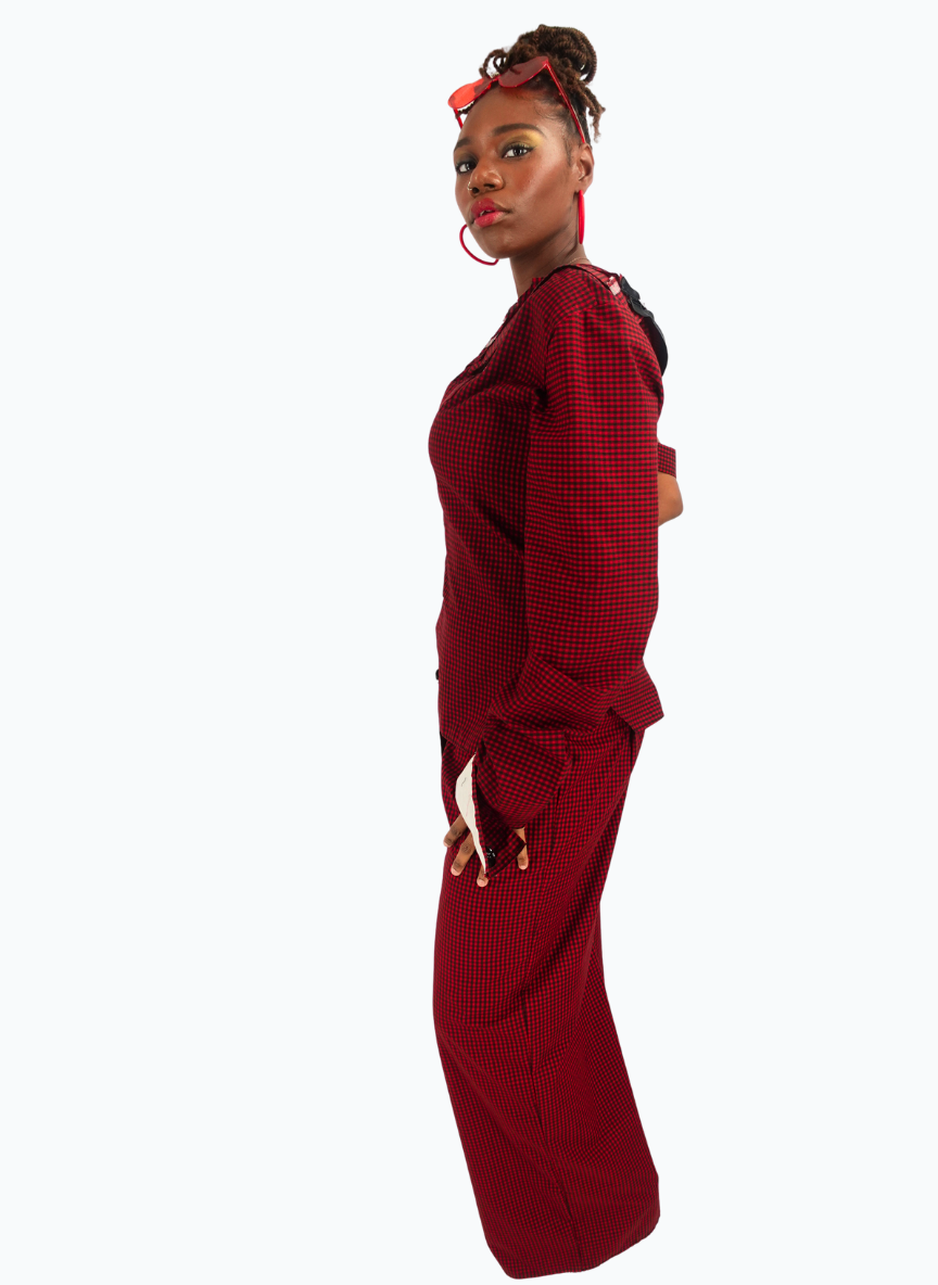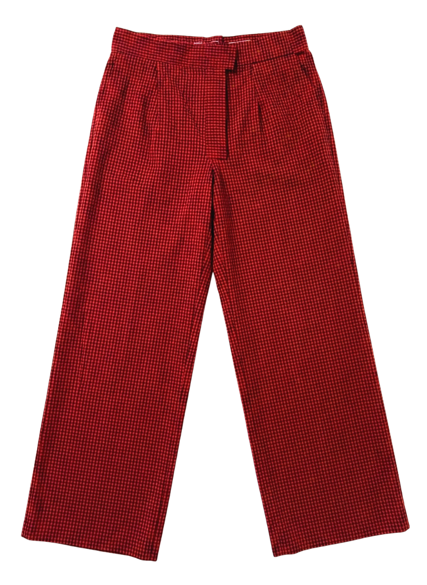 Red/black gingham wide-leg trousers