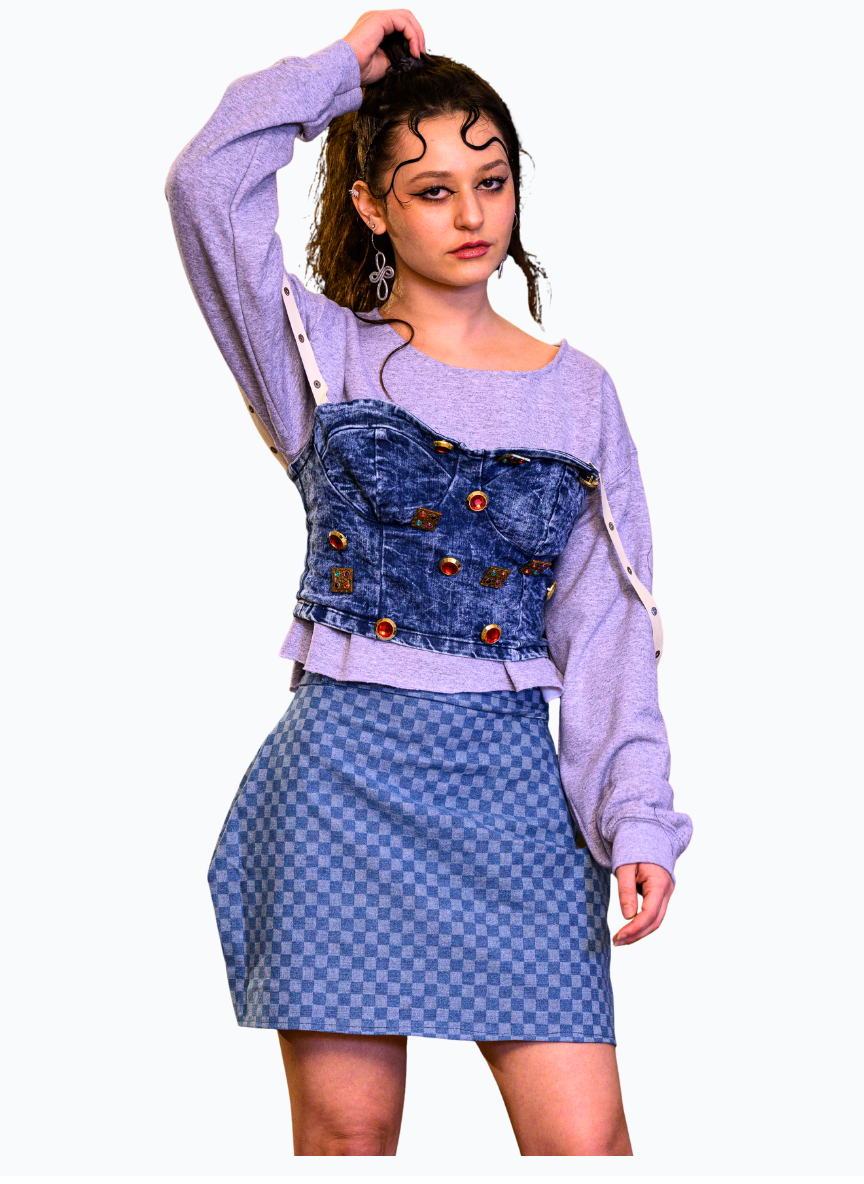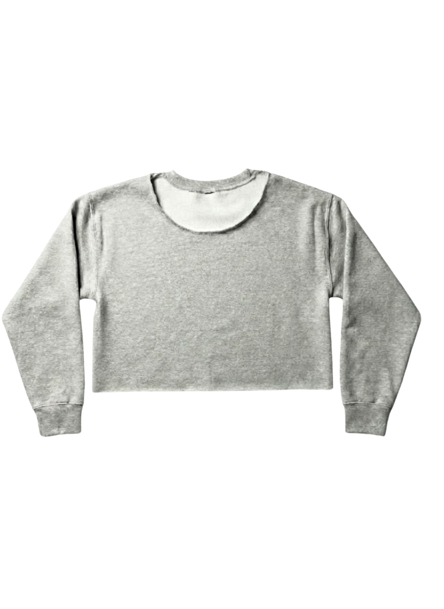 A cropped grey sweatshirt with a clean, cozy fit and an effortless off-duty vibe.