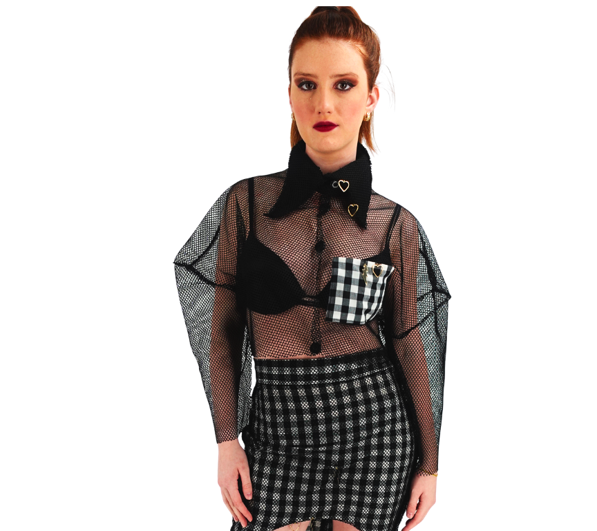 Denim Dynasty Corset$120 “Love Me” Electric Fringe $155 Limited Edition Asym Gingham$135 The Break up Shirt -XOXO$125 AF Structured Mesh Over Jacket$155 Wildflower Warning Crop$90